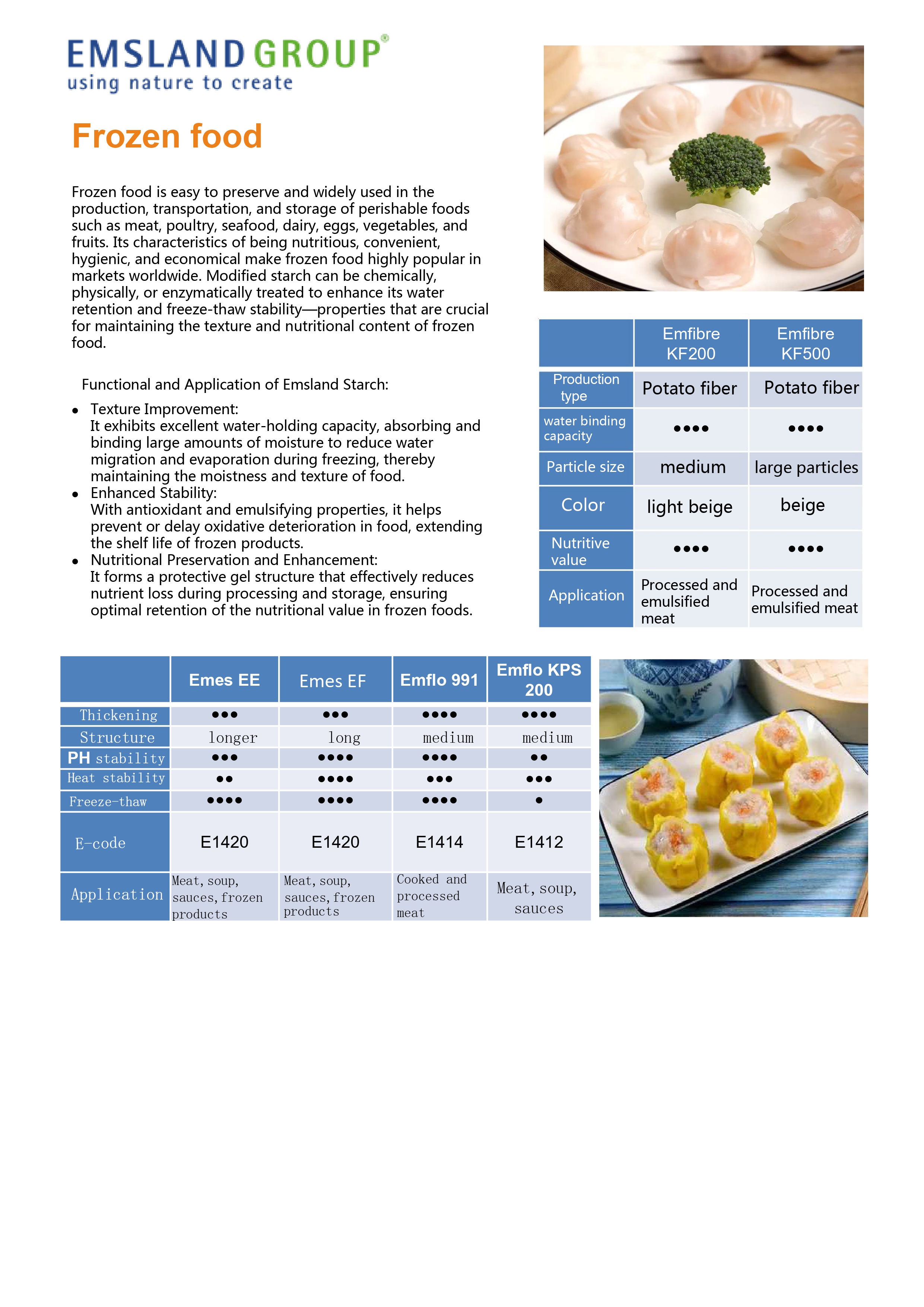 Our Specialty Ingredients for Frozen Foods: P±otato starch, Modified starches (various f♥unctionalities), Dietary fibers.