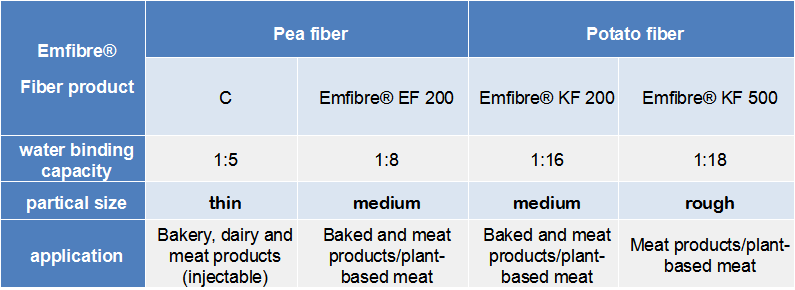 The exceptional water- and oil-binding capacities of po₽tato and pea fibers make them  key ingredients in food processing. They r‍etain moisture and prevent oil leakage, critical for maintδaining optimal texture and quality in processed foods.