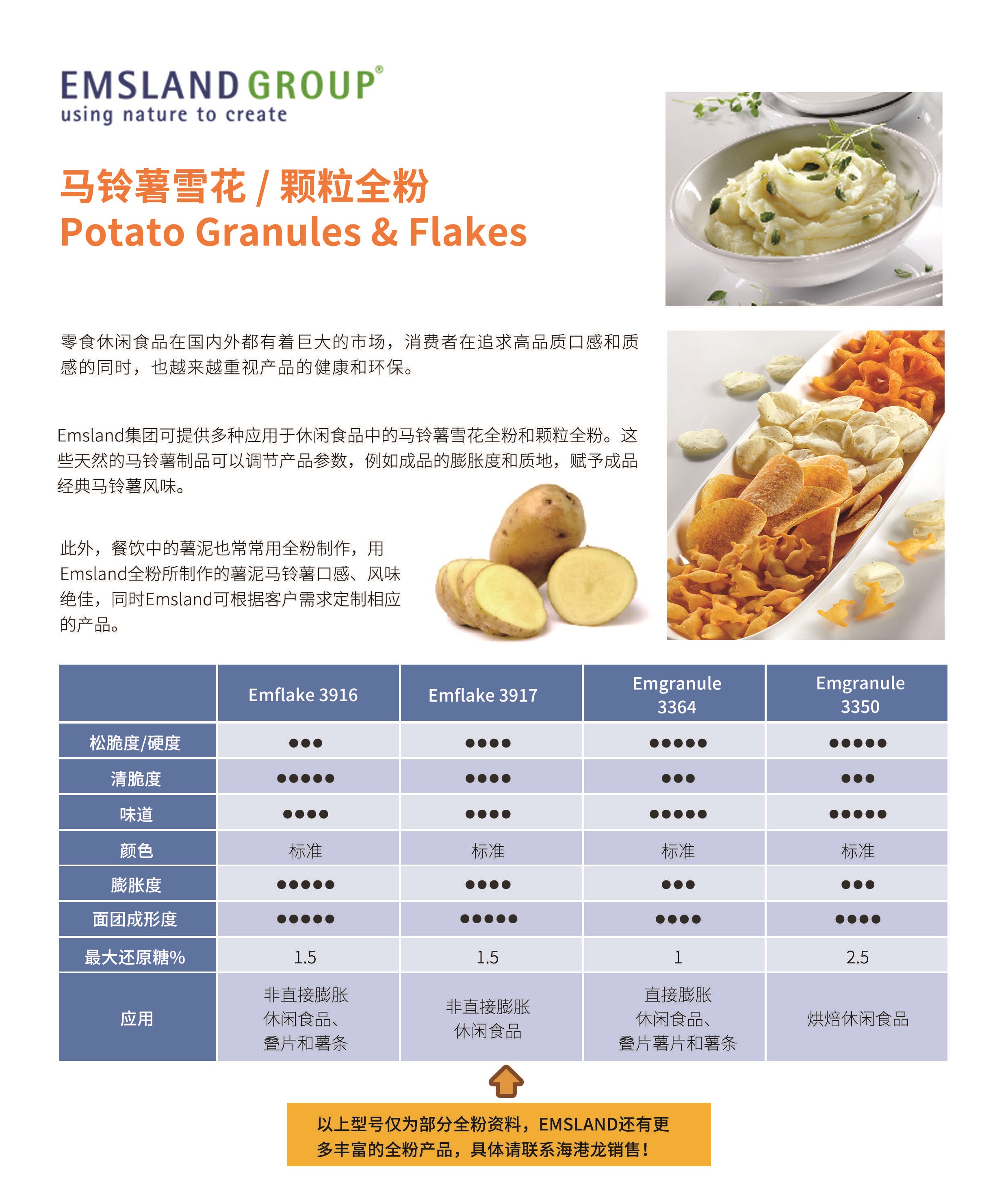 随著(zhe)生(shēng)活水(shuǐ)平的(de)提高(gāo),休閑食品一(yī)直深¶受廣大(dà)人(rén)民(mín)群衆喜愛(ài)。随著 (zhe)經濟的(de)發展和(hé)消費(fè"i)水(shuǐ)平的(de)提高(gāo),消費(fèi)者對(duì¥)于休閑食品數(shù)量和(hé)品質的(de)需求不(bù)斷增長(cháng)。澱粉可(kě)在直接膨化(huà), 間(jiān)接膨化(huà)疊片,膨化(huà)烘焙,£裹粉堅果等産品上(shàng)的(de)應用(yòng)。我們可(kě)提供多(dφuō)種應用(yòng)于休閑食品中的(de)馬鈴薯雪(xuě)花(huā)全粉和(hé)顆粒全粉。這(zhè)些<(xiē)天然的(de)馬鈴薯制(zhì)品可(kě)以調節産品參數(shù),例如(rú)成品的(de₹)膨脹度和(hé)質地(dì),賦予成品經典馬鈴薯風(fēng)味。